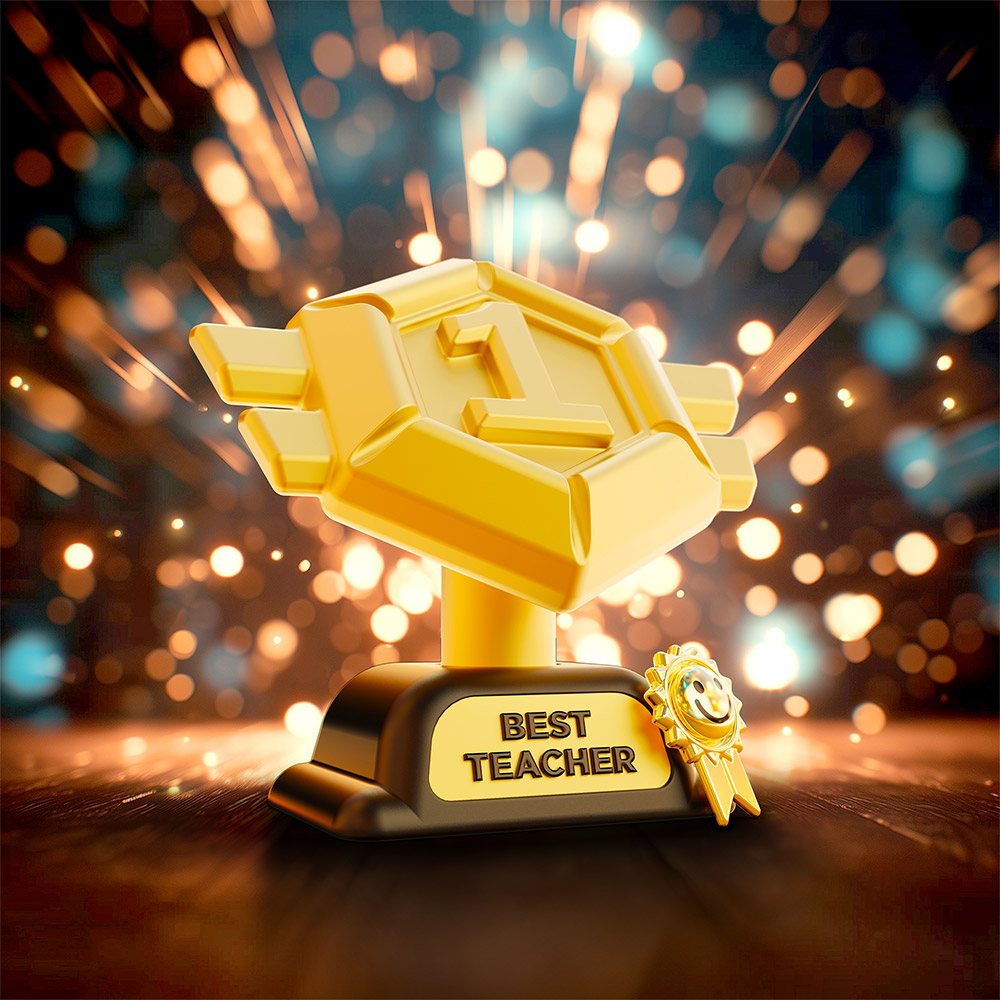 Pearl gold, Matt bullet stand, "Best Teacher" sticker, Shiny gold, Black epoxy finish