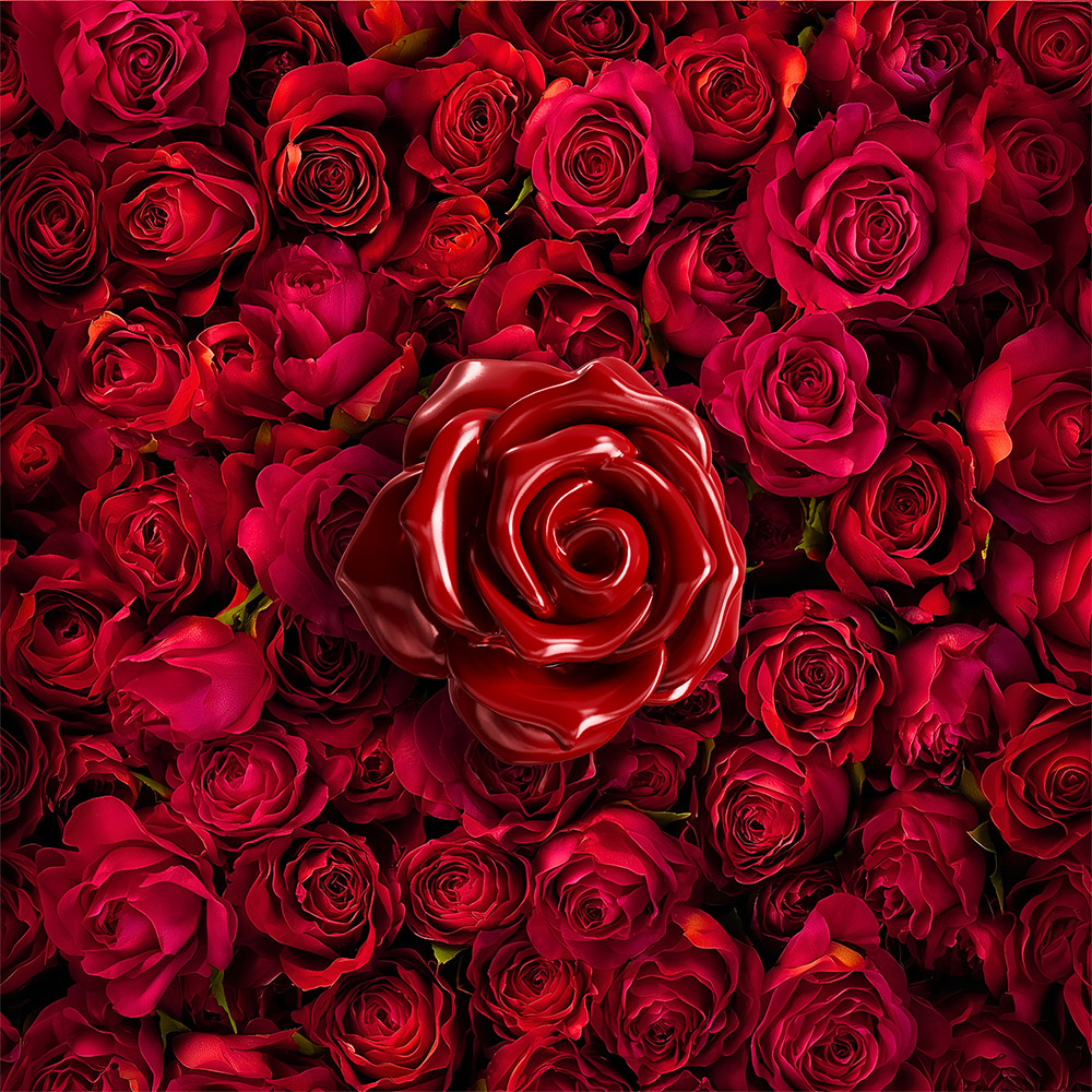 shiny chrome & red silicone heart, lasered letters, red paint flower finish